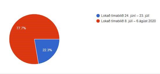 77,7% völdu tímabilið 8. júlí - 6. ágúst og 22,3% völdu tímabilið 24. júní - 23. júlí.
